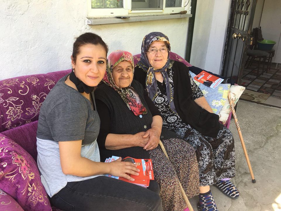 Ziyaret ettiği köylerde sıcak ilgiyle karşılanan Zübeyde Aktaş’ı kapılarında gören köy sakinleri memnuniyetlerini gizleyemezken ona büyük ilgi göstererek çabasına destek oluyorlar.