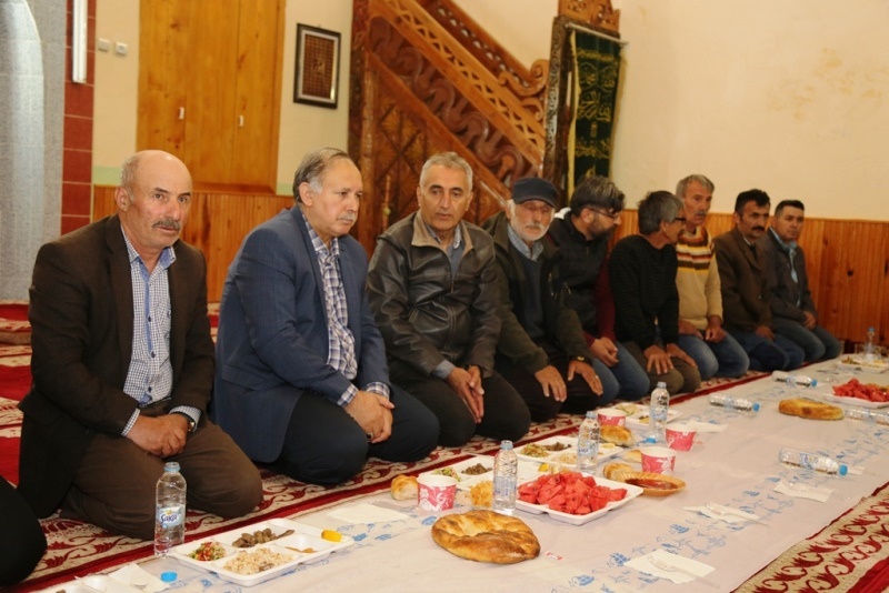 Köy camisinde düzenlenen ve çok sayıda köylünün katıldığı iftar yemeğinde Vali Doğanay ve beraberindekiler köylülerle birlikte iftarını açtı.