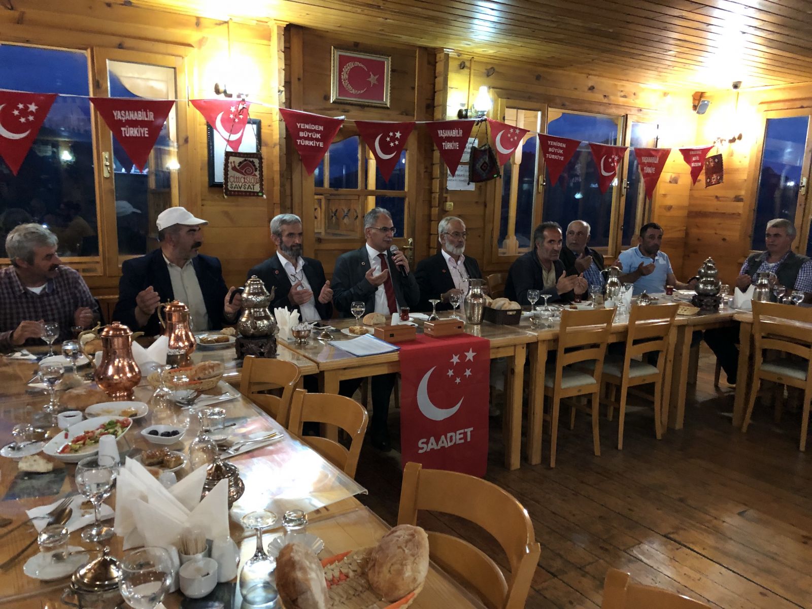 Teşriflerinizden dolayı şeref duydum beni çok mutlu ettiniz. Rabbimde sizleri ailelerinizle sevdiklerinizle mutlu etsin. Bir seçim ayındayız. Memleketimize hizmet etmiş olan taş üstüne taş koyan bütün siyasilerimize binlerce teşekkür ediyorum. Ayrıca bütün siyasi partilerimizin milletvekili adaylarına ülkemize hizmet etmek için yola çıktıkları için hepsine ayrı ayrı teşekkür ediyorum. Ülke için çalışan herkesi saygıyla karşılıyorum. Saadet Partisi olarak bunun ötesinde acaba neyi ifade ediyoruz. Her şeyin bir kuralı var. Ne iş yaparsanız yapın onun kurallarını bilmek zorundasınız. Kuralları bilmedikten sonra iyi niyetlide olsanız kurallara uymadığınız ve bilmediğiniz sürece kendinize de etrafınıza da zarar veririsiniz. Bunun için şu an ülkemizi yöneten ve yönetmeye devam etmek isteyen siyasi partilere şunu ifade etmek istiyorum. 90 sene önce denize döktüklerimiz, dağın ötesine ittiklerimiz bugün bize ilaç yerine zehir veriyor. Sen Avrupa birliğinin reçetelerini uygulayacaksan sen Amerika’ya güvenmeye devam edeceksen maalesef iyi niyetli olabilirsin ama hem kendini hem de ülkeyi perişan ediyorsun. Şu an geldiğimiz nokta budur. Çok değerli yöneticilerimiz diyorlar ki Kurtuluş savaşı yıllarına geldik. Etrafımız ateşten çembere döndü. Irak parçalanırken, Suriye parçalanırken, Amerika teröristlere silah yardımı yaparken senin konumun, durumun neydi. Bazen iktidar tarafından öyle sözler söyleniyor ki acaba iktidar koltuğunda 16 yıldır başkası mı oturuyordu diye düşünüyorum. Faizciye bağırıyorsun bankacıya bağırıyorsun 15 yıldır Anayasayı değiştirme gücün var peki ne duruyorsun. Faizcinin elinden köylüyü esnafı kurtar. Kredi borçları altında vatandaş inim inim inliyor. Neden hala daha Amerika ile stratejik ortaklık arıyor ve devam ediyorsun. Allah rızası için bir düşünün. Bu güçler senin ülkende darbe yapmaya kalkıştı. Senin ülkende bazılarına silah yardımı yaptılar. Sen hala daha bir yolunu bulup bununla irtibat kurmaya çalışıyorsun. Sana da yazık. Yanlış yoldur bu. Avrupa birliği yasaları ülkenin çivisini çıkardı. Çocuklarımı ailelerden koptu. Üst kattaki komşu ile alt kattaki komşu kavgalı hale geldi. Hemen parlayan bağıran çağıran toplum olduk. Tahammülsüz hale geldi. Ahlaki anlamında çöküntüye uğradık. Ekonomik anlamda tarımla uğraşanlar %60 lardayken bunu bize % 15 lere çektirdiler. Vatandaş ürettiğini satamadı. Kar eden fabrikalarımız özelleştirildi. Defalarca aldatıldık diyorsunuz. Bu kadarda olmaz yani yeter artık. Şu memleketin gemisinin yönünü batılılara doğru çevirme. Ülkenin gemisinin yönünü batıya çevirdikten sonra kaptan köşkünde ezan okutsan da boştur, mehter Marşı çaldırsan da boştur. Saadet Partisi olarak bizler, bu ülkenin insanlarını kardeş gibi çatışmalardan uzak tutmak istiyoruz. Sağcı solcu ayrımı kabul etmiyoruz. Kürt Türk ayrımı kabul etmiyoruz. Alevi Sünni ayrımı kabul etmiyoruz. İnanan inanmayan ayrımını da kabul etmiyoruz. Zalim olmayan emperyalist olmayan herkesin başımızın üstünde yeri var. Sömürüye hep beraber karşı durmalıyız. Siyasetin dili sertleşti. Biz kavgadan yana değiliz. Farklı siyasi görüşte olanlar bizimle kavga etmesin istediğimiz gibi birbirleri ile kavga etmesinler. Hiçbir parti birbiri ile kavgalı olmasın. Hepsi bu vatanın evladıdır. Biz şu siyasi partilerin her biri ile bu ülkenin kalkınmasını sağlayacağız.