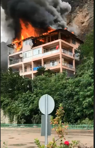 Yangın, cumartesi günü saat 15:00 sıralarında Yusufeli ilçesi Merkez mahallesinde Necdet ve Necat Coşkun kardeşlere ait 5 katlı binanın en üst katında çıktı. Evde kimsenin bulunmadığı sırada henüz belirlenemeyen nedenden dolayı çıkan yangında alevler kısa sürede tüm katı sardı.