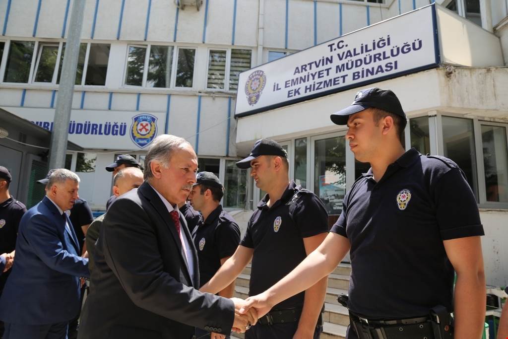 Buradaki törenin ardından Vali Doğanay ve beraberindekiler, Çarşı Mahallesi Polis Karakolu, 25. Mekanize Tugay Komutan Yardımcılığı ve İl Jandarma Komutanlığını ziyaret ederek burada görev yapan asker ve polislerin bayramlarını kutladı.
