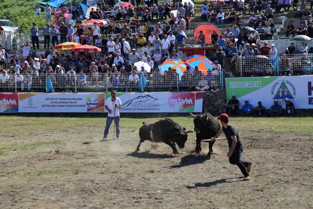 Kafkasör Yaylasında gerçekleştirilen ödüllü boğa güreşlerine Artvin'in yanı sıra Rize ve Erzurum'dan getirilen 130 boğa katıldı. 50 ile 100 bin lira arasında fiyatları değişen boğalar, güreşler öncesi kilo ve boynuz kontrolünden geçirildi, sivri boynuzlular zımparalandı. Boğalara verilen Mario Gomes, Behlül, Dimitri, Haydut, Miroğlu, Eşkıya, Ernosto, Cerattepeli, Afrin gibi ilginç isimler dikkat çekti. Yaklaşık 20 bin kişinin izlediği güreşlerin son gününde Büyük Orta, Başaltı ve Baş kategorilerinde 53 boğa arenada kozlarını paylaştı.
