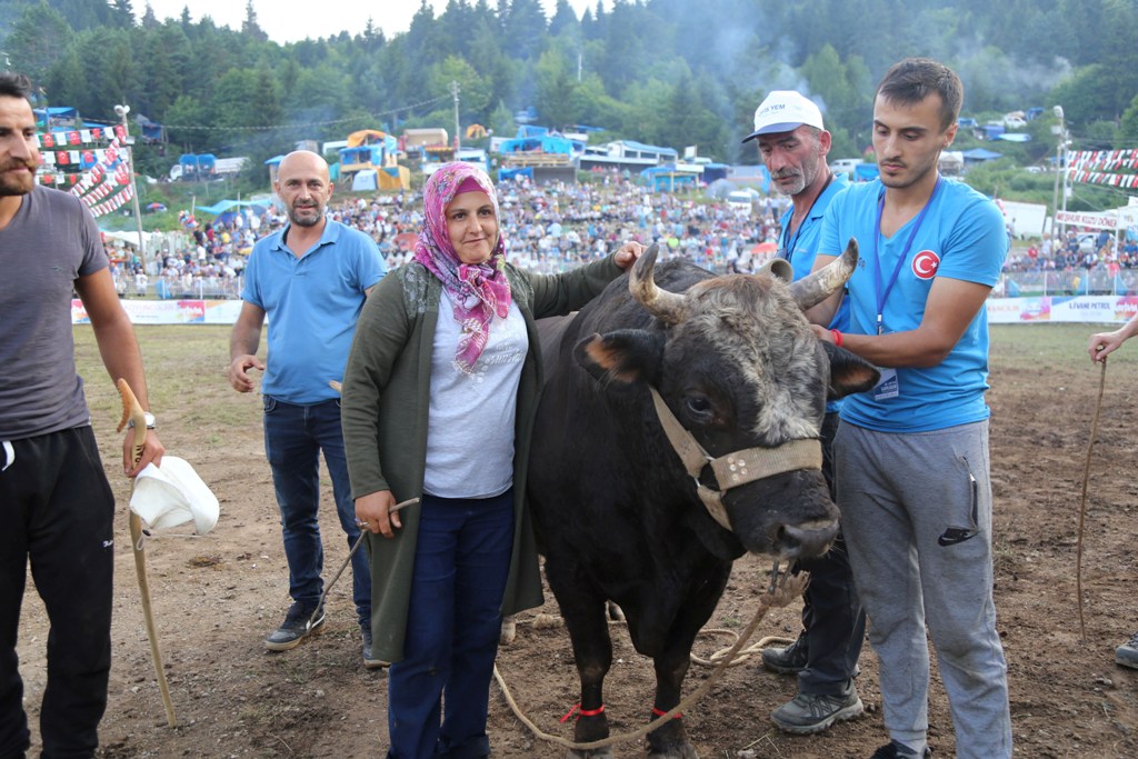 Artvin Belediyesi organizasyonunda Geleneksel Boğa Güreşlerini Yaşatma ve Yaylalarını Koruma Derneğince bin 200 rakımlı Kafkasör Yaylası'nda, cumartesi günü başlayan boğa güreşlerinin son gününde, "Büyükorta", "Başaltı" ve "Baş" boğa kategorilerinde 54 doğa kozlarını paylaştı.