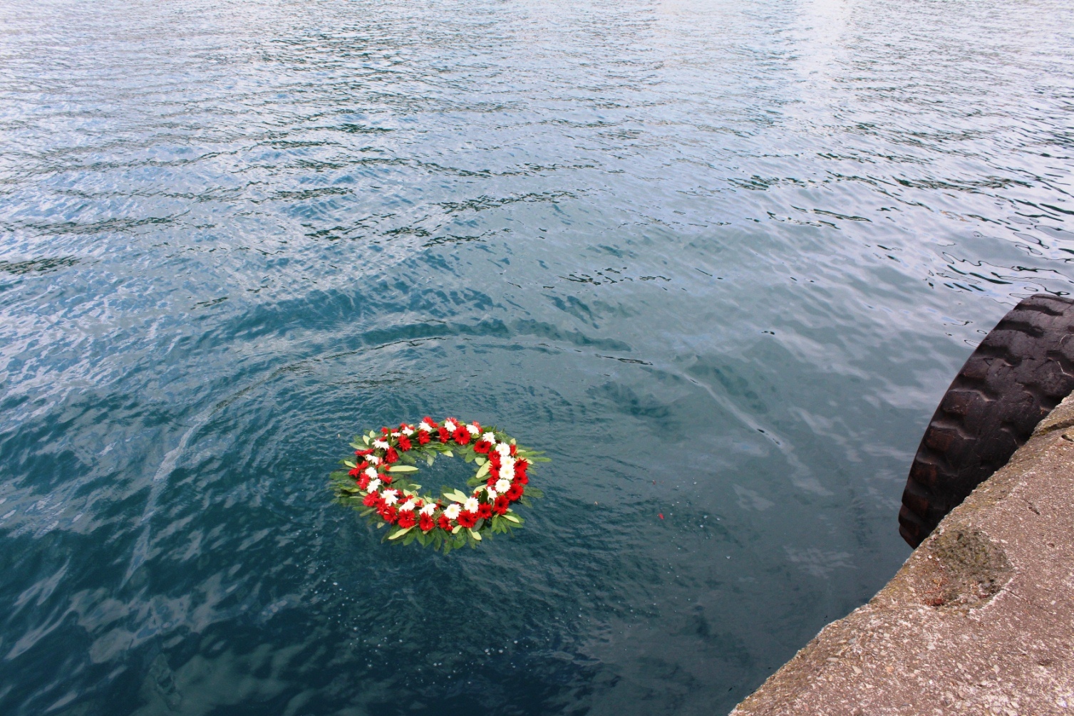 Daha sonra Kaymakam Canpolat ve protokol üyeleri tarafından Deniz Şehitleri için Denize çelenk atıldı.
