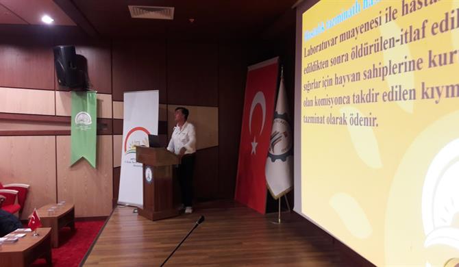 Konuyla ilgili slayt gösterisi yapılarak, LSD hastalığı (Sığırların Nodüler Ekzantemi) ile mücadele çalışmaları kapsamında, sağlıklı hayvanların aşılanması programının tamamlandığını, bugüne kadar tespit edilen veya ihbar edilen hasta hayvanların toplandığını, hastalıkla mücadele kapsamında işletmelerde bazı dezenfekteler yapıldığını hayvan sahiplerinin ahır, ahır çevresi, samanlık gibi ortamların sönmemiş kireç, dezenfektan madde veya çamaşır suyu kullanarak dezenfekte etmeleri, sığır cinsi hayvanları kesinlikle ahır bölgesinden uzaklaştırmamaları, şüphe görülen hayvanları, görevliler gelene kadar sağlıklı hayvanlardan ayırmaları gerektiğinin altı çizildi.
