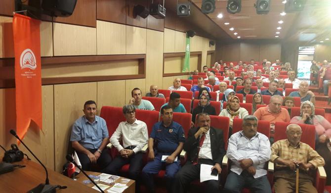 Toplantıya katılanlara hastalıkla ilgili bilgilendirmenin olduğu liflet, broşür dağıtılarak muhtelif yerlere afiş asıldı.