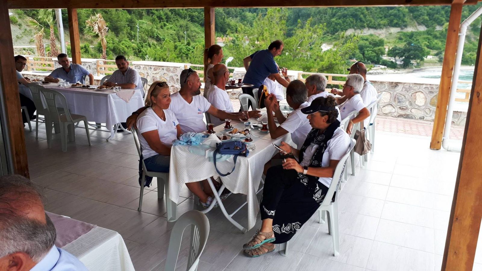 (DADDralli) Denizlerdeyiz Amatör Denizcilik Derneği Başkanı Zafer Türkmen ve dernek üyeleri ile Ayancık Belediyesi Gelincik Sosyal Tesislerinde çay sohbetinde bulunmaları ardından Ayancık’tan ayrıldılar.