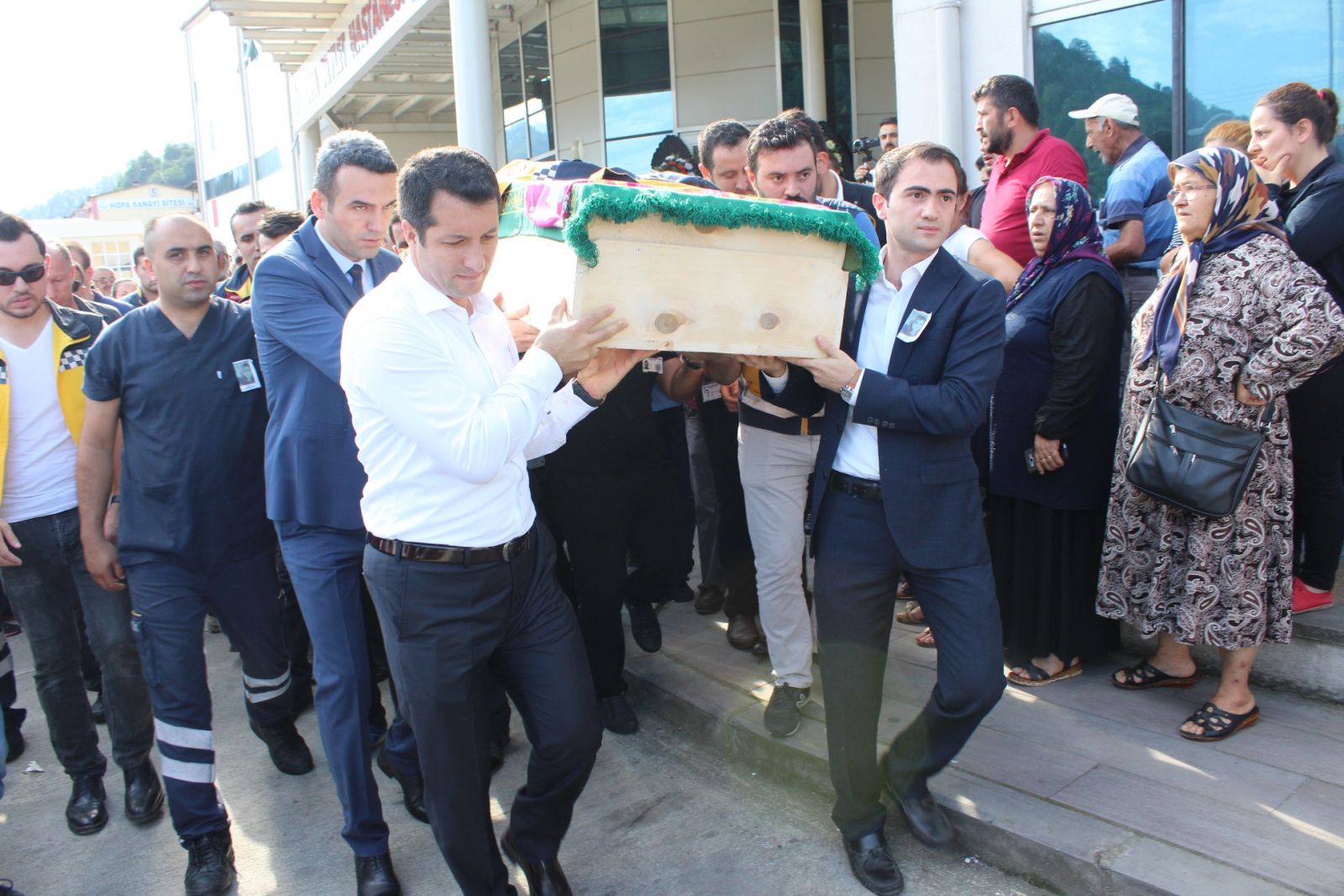Hayatını kaybeden 112 acil tıp teknisyeni Tuğba Yıldırım için Hopa Devlet Hastanesi önünde tören düzenlendi. Törene polis memuru eşi Caner Yıldırım’ın yanı sıra, Hopa Kaymakamı Abdurrezzak Canpolat, İl Sağlık Müdürü İrfan Akalın, İlçe Emniyet Amiri Gökhan Erdal, Sağlık İşleri Başkanı Hasan Gündoğdu, Türk Sağlık Sen Artvin Şube Başkanı Turgut Ocakçı, sağlık çalışanları, polis memurları ve yakınları katıldı.