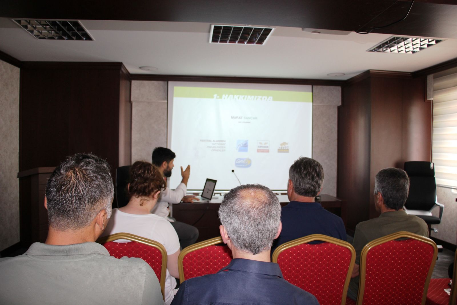 Artvin Ticaret Odası toplantı salonunda esnaflarla bir araya gelerek fuar hakkında sunum yapan fuar organizatörü Murat Sancar, hazırladıkları fuar programını esnaflarla paylaştı.