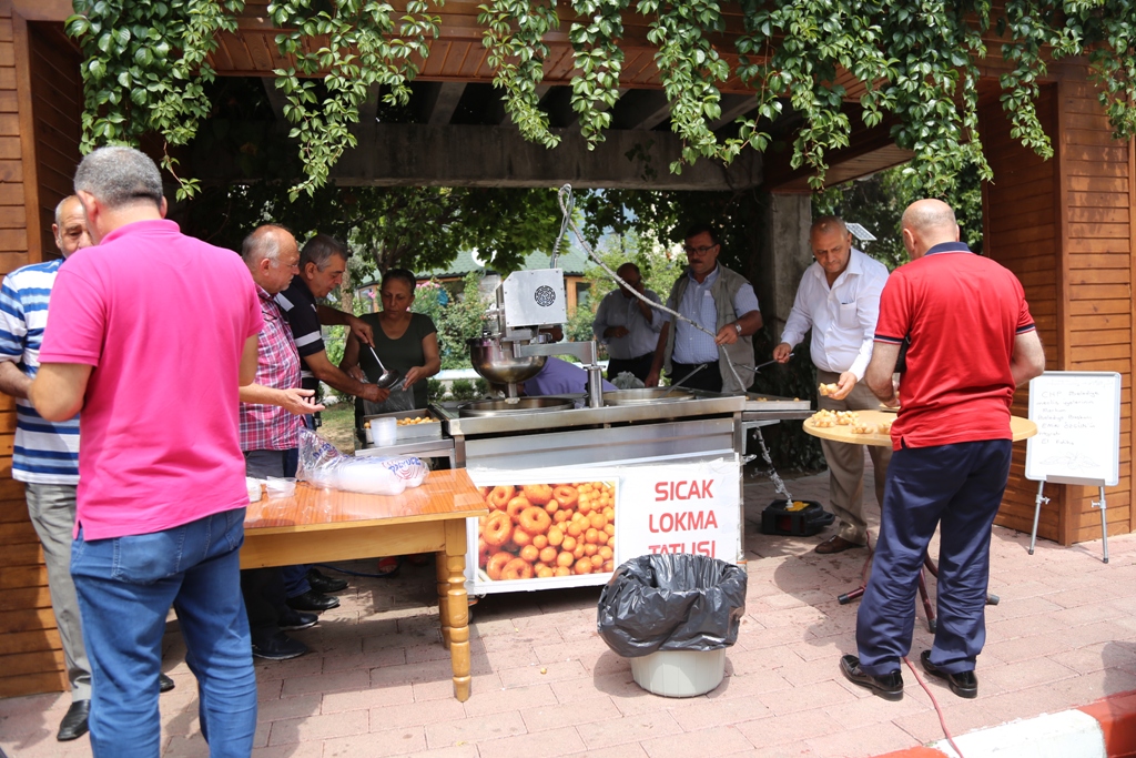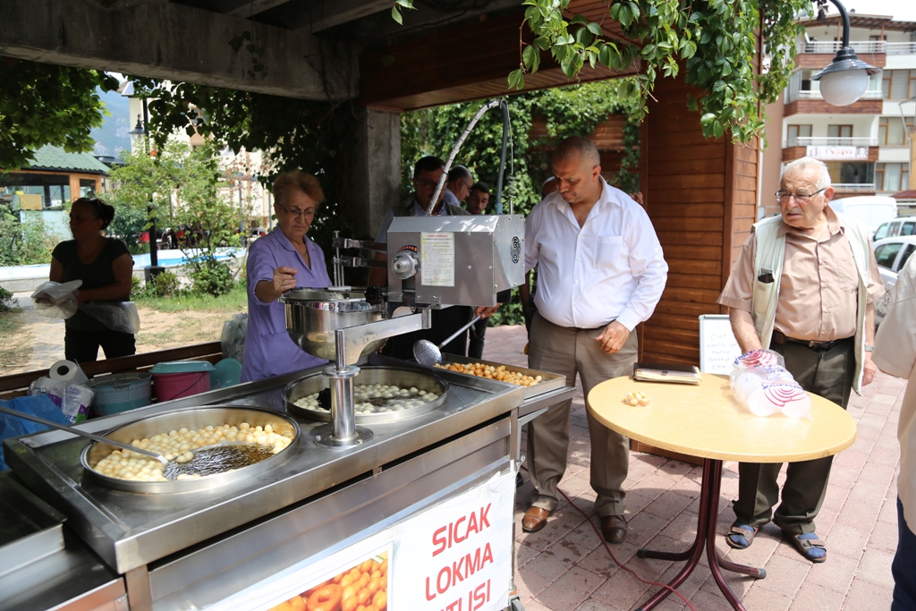 Merkez Camii önünde düzenlenen lokma ikramı CHP eski kadın kolları başkanı Nebahat Katırcı’nın organizasyonunu yaptığı şirket tarafından düzenlendi.