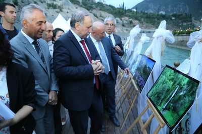 Son olarak ise Artvin Valisi Ömer Doğanay kürsüye çıktı. Doğanay burada yaptığı konuşmasına; Bugün ikincisini düzenleyeceğimiz Artvin’i, Artvin’de tanıtma günlerine hoş geldiniz diyerek konuşmasına başladı. Doğanay konuşmasında şunları söyledi:”Artvin deyince konuşulacak o kadar çok şey var ki, Artvin’in sınırlarına sığar nede Türkiye’nin sınırlarına sığar. Zaten Artvinli Artvin’e sığmamış Türkiye’ye de sığmamış dünyayla irtibat haline geçmiş. Artvin’e güzellikler gelmeye devam ediyor bundan sonrada devam edeceği kanaatim tamdır. Artvin’in en önemli sorunu ulaşımdır. Ulaşımı çözdüğünüz anda Artvin’de hiçbir sorun kalmayacaktır. Bir zamanlar Artvin’in hayali olan projeler gerçekleşti. Gerçekleşmeye de devam edecektir. İnsan gözünü açıyor doğdu diyorlar,gözünü kapıyor öldü diyorlar. Bu ikisi arasındaki göz kırpmaya ömür diyorlar bütün mesele bize verilen bu ömrü insan gibi yaşamak ve insan gibi yaşatmak için elimizden gelen ne varsa yapmak. Hepimiz inşallah gayret edeceğiz gayret etmeye devam edeceğiz. Her şey Artvin için, Artvinli için Türkiye için diyorum” diyerek sözlerini tamamladı