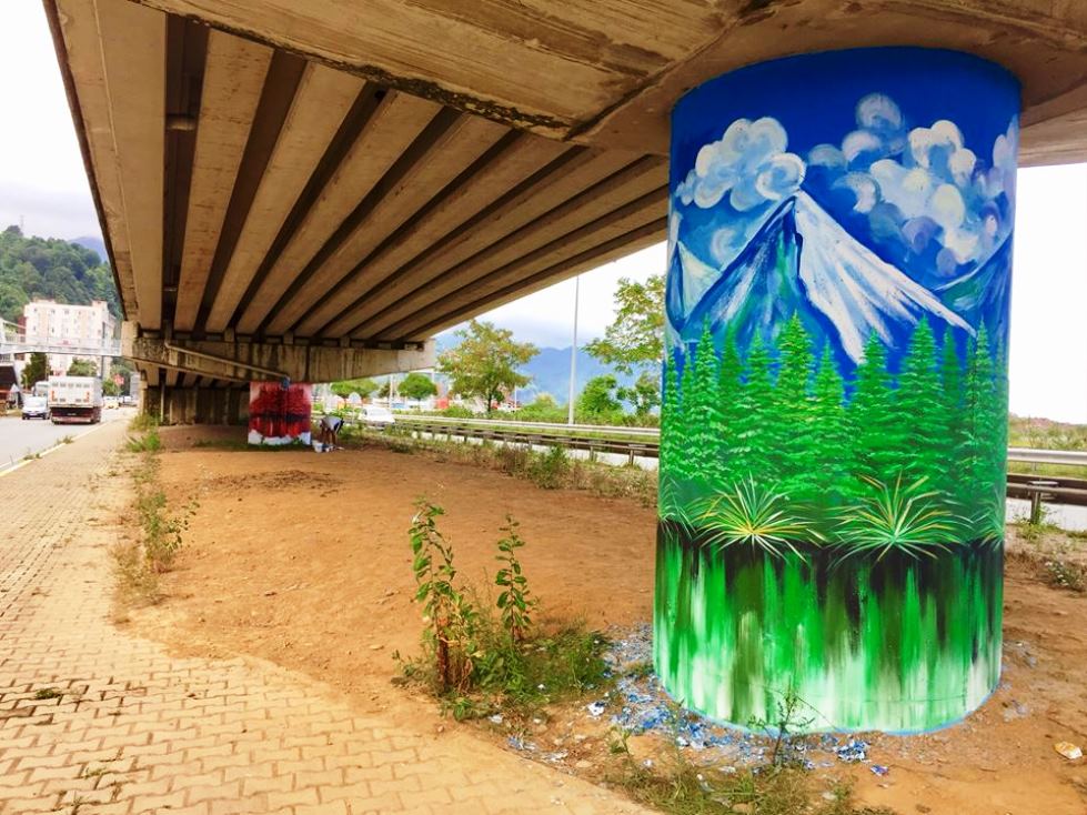 Hopa’da ilçe genelinde başlatılan çalışmayla, viyadük altları ve trafoların duvarları resim ve renklerin eğlenceli dünyası ile buluşturulmaya devam ediyor.