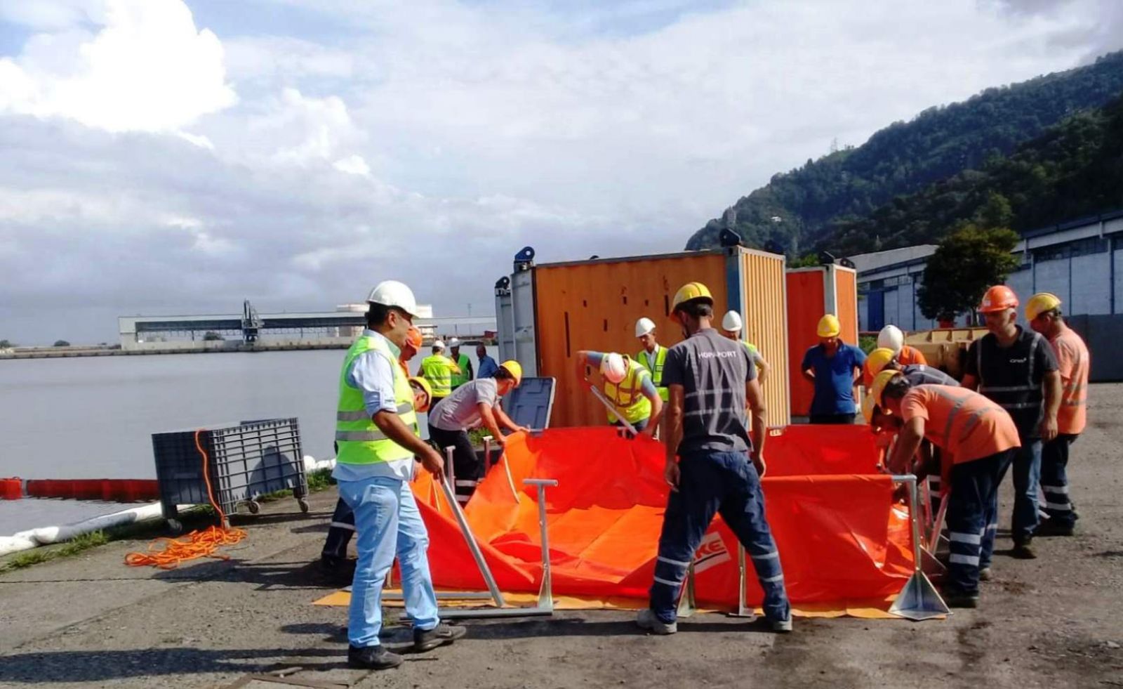 HOPAPORT Ana Operasyon Rıhtımına yaklaşan bir gemiden petrol döküntüsü ve sızıntısına karşı deniz kirliliğini önleme amacı olan tatbikatta limanda görevlendirilmiş personel ve aracı kurum eğitmenleri görev aldı. İSG Uzmanı Emine Gümüşkaya yönetiminde yapılan çalışma ile petrol döküntüsünün denizi daha fazla kirletmesinin önüne geçilmesi için sızıntı yapılan geminin etrafı ilk önce çift tipli bariyerlerle çevrilerek sızıntının yayılmasının önüne geçildi, İkinci aşamada da teknik cihazlarla denize dökülen petrol sızıntısı temizlendi. Burada skimmer denilen yüzey sıyırıcı deniz pompası kullanıldı. Daha sonra Vakumlu yüzey temizlik pompası ile deniz yüzeyinde biriken petrol sızıntısı geçici depolama tankına çekilerek deniz yüzeyi petrol sızıntısından temizlendi.