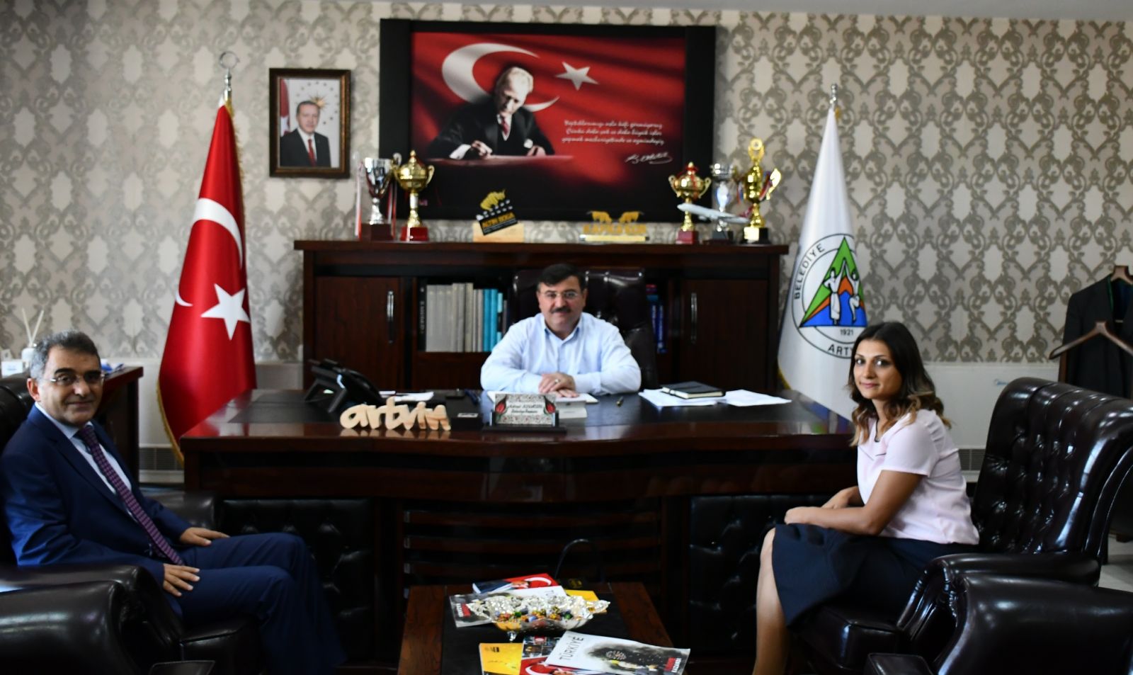 Belediye Başkanı Mehmet Kocatepe, Vakıfbank Artvin Şube Müdürü Kadir Saydın ile makamında gerçekleştirdi görüşmede TROY kart hakkında detaylı bilgi aldı.