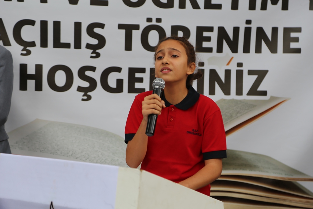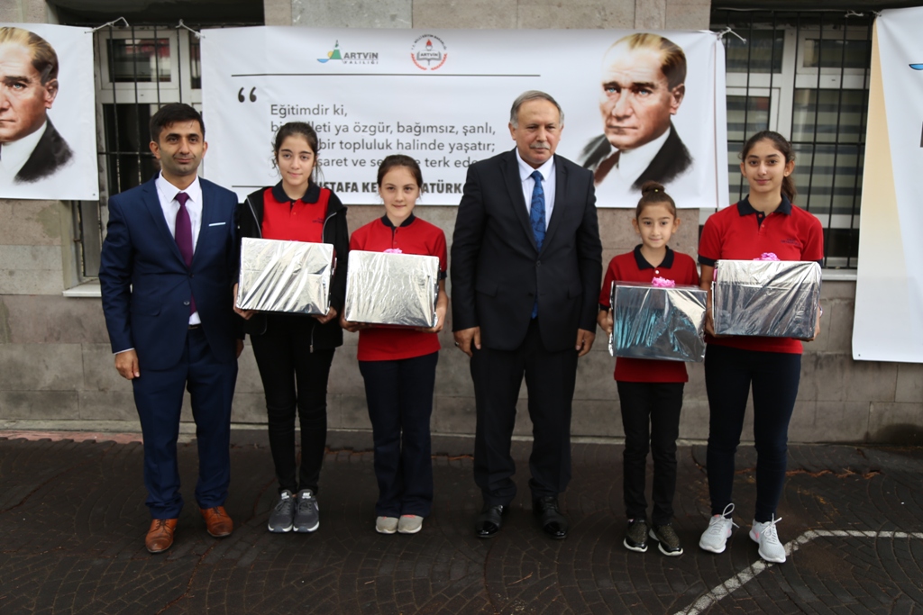 Artvin Gazi Ortaokulu’nda saygı duruşu ve İstiklal Marşı’nın okunmasıyla başlayan törende eğitim öğretimin önemine ilişkin konuşmalar yapılarak şiirler okundu.