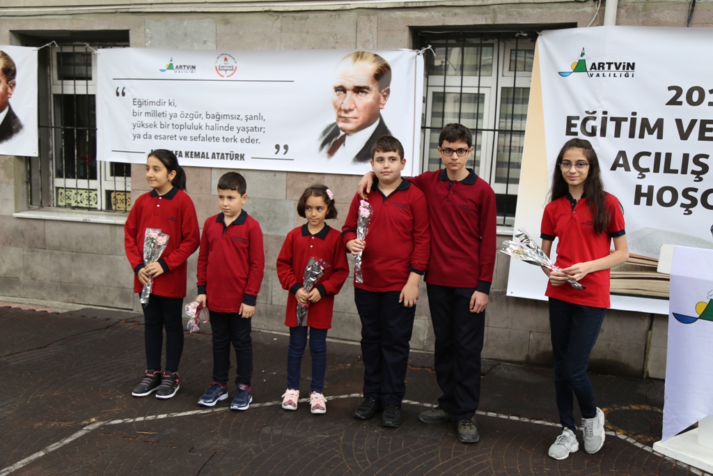 Bu duygu ve düşüncelerle geleceğimizi şekillendiren kıymetli öğretmenlerimizin, yarınlarımızın teminatı olan sevgili öğrencilerimizin, eğitim öğretimin vazgeçilmez paydaşları olan değerli velilerimizin ve tüm eğitim camiamızın İlköğretim Haftası’nı kutluyor, 2018-2019 eğitim-öğretim yılının Artvin’imize, ülkemize hayırlı olmasını Cenab-ı Allah’tan niyaz ediyorum. İlimizde yaptığımız tüm eğitim çalışmalarında bizlere her zaman büyük destek veren Sayın Valimize, milletvekilimiz sayın Erkan Balta’ya, belediye başkanımız sayın Mehmet Kocatepe’ye, kurum amirlerimize ve Bakanlığımızın değerli yöneticilerine şükranlarımı sunuyor, gelecekte daha başarılı ve mutlu bir Artvin oluşturma azmiyle sizleri selamlıyor, saygılarımı arz ediyorum. Törende öğrenciler tarafından eğitim öğretimin önemine ilişkin şiirler okunurken okula yeni gelen öğrencilere okuldaki öğrenciler tarafından çiçek verildi.