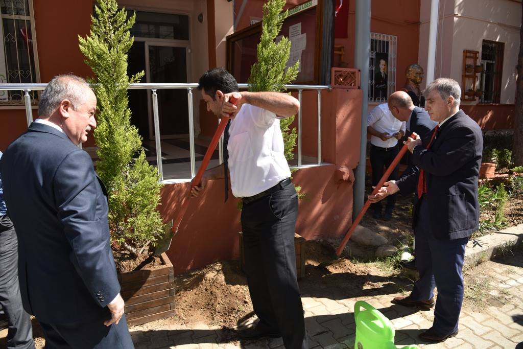 Orman Bölge Müdürü Selim Gurbetoğlu konuşmasında; “Orman Genel Müdürlüğümüzün “Okullar Hayat Bulsun Projesi” kapsamında, okullarda çevre düzenlemesi ve ağaçlandırma faaliyetleri yürütmektedir. 2018’in baharında bu okulu belirleyerek burada bir çevre düzenlemesi ve ağaçlandırma faaliyeti yerine getirdik. Bugün de bunun arkasını bırakmayarak kuruyanların yerine yenilerinin dikilmesi ve çevre bakımının yapılması için bir araya gelmiş bulunmaktayız. Bu vesile ile de yeni eğitim ve öğretim yılınızı kutlayarak, tüm öğrencilere öğretmenlere başarılı olmasını, sağlık, sıhhat afiyet içerisinde bir eğitim yılı geçirmenizi Allah tan temin ediyor, saygılar sunuyorum” diyerek sözlerini tamamladı.