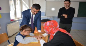 Öğrencileri kendi sınıflarında ziyaret ettikten sonra öğrencilerle birlikte ders etkinlik uygulamalarına katılan Kahveci okuldaki öğretmenlerle yaptığı toplantıda uygulanan eğitim programları hakkında bilgi aldı.