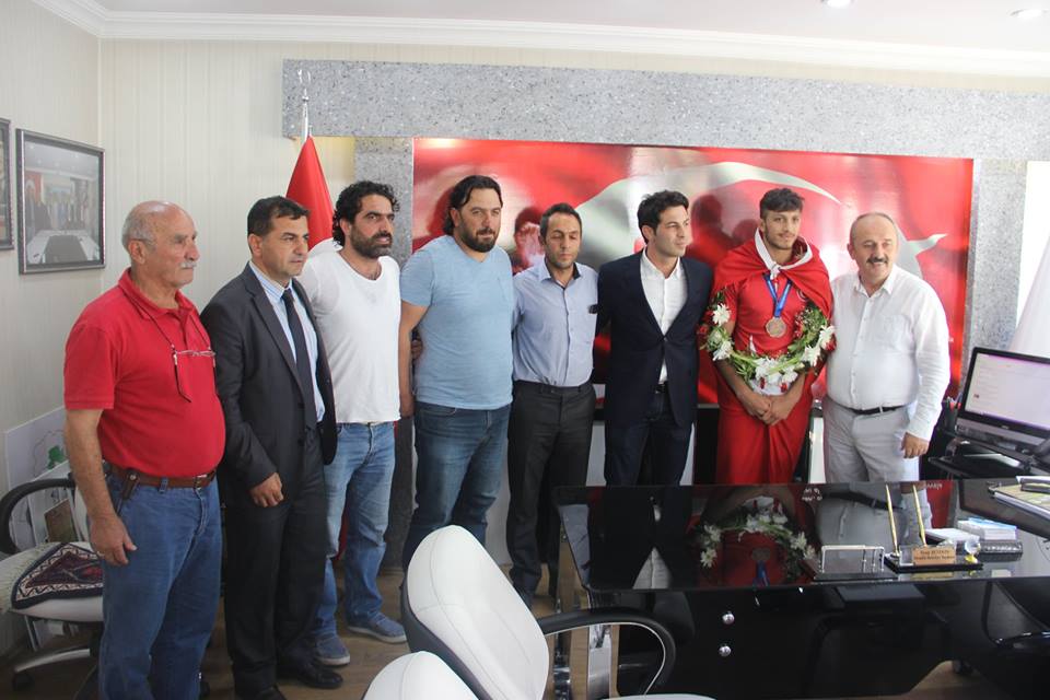 Daha sonra İlçe Kaymakamı Eyüp Kaykaç tarafın dan da kabul edilen şampiyon Erkan Ergen’i Kaymakam Kaykaç tebrik ederek başarılarının devamını diledi. Hediye takdim etti.
