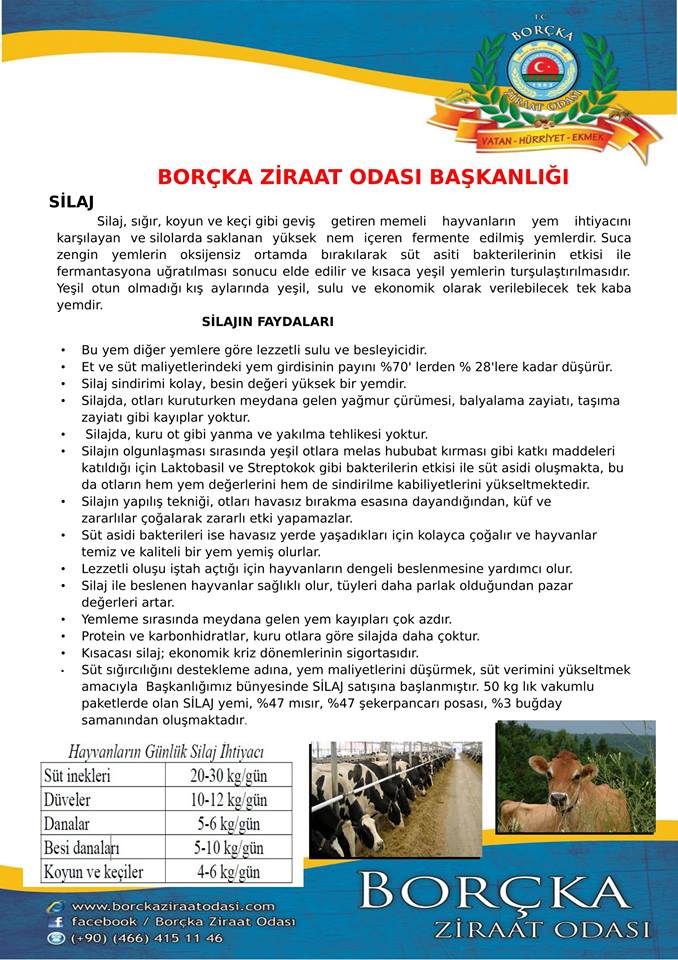 “Süt ve besi hayvancılığını destekleme adına, yem maliyetlerini düşürmek, süt ve besi verimini yükseltmek amacıyla Başkanlığımız bünyesinde maliyetine SİLAJ satışına başlanmıştır.