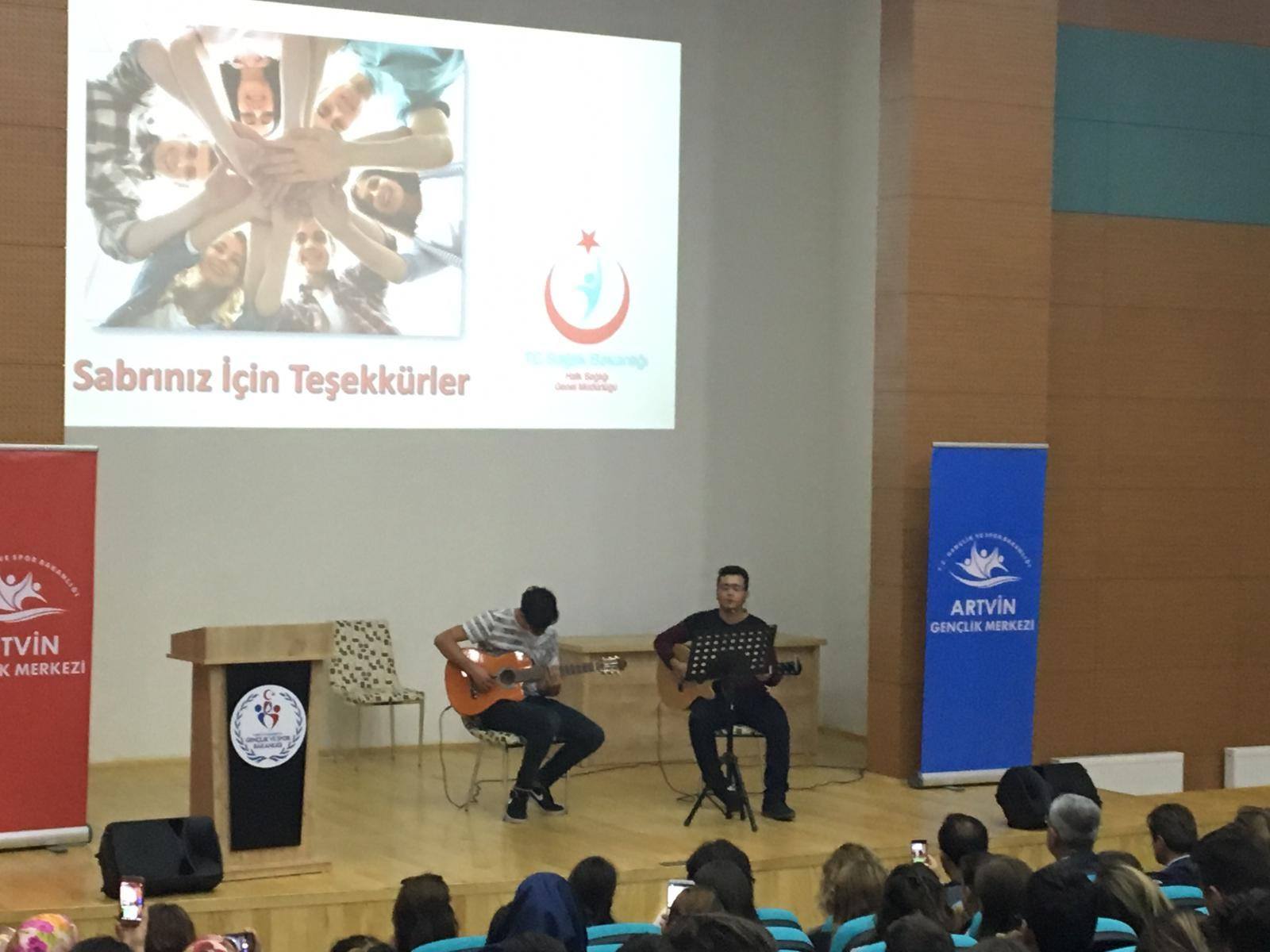 Seminer öncesi gençlere Müdürlüğü Ruh Sağlığı personelleri tarafından bilgilendirme amaçlı broşür dağıtımı yapılmış olup ardından video gösterisi düzenlendi. Seminerin akabinde Artvin Gençlik Merkezi üyesi olan öğrenciler tarafından solo müzik gösterisi gerçekleştirilmiş ve Müdürlüğünde Halk Sağlığı Uzmanı olan Dr. Şeyda Tok tarafından günün anlam ve önemi ile ilgili kısa bir kapanış konuşması yapılarak etkinlik bitirildi.