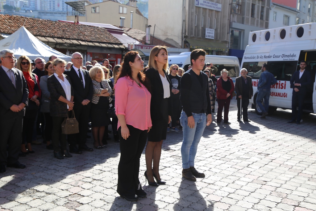 Programda sırasıyla CHP, ADD ve Yardım Sevenler Derneği Atatürk anıtına çelenklerini takdim etti. Daha sonra saygı Duruşu ve Okunan İstiklal Marşının ardından günün anlam ve önemine dair konuşmayı CHP İl Başkanı Ahmet Biber gerçekleştirdi. Biber konuşmasına Cumhuriyetin kuruluş tarihçesini kısaca hatırlatarak başladı. Biber konuşmasına; ” Cumhuriyet kolay kurulmadı. Ne yazık ki Cumhuriyetimizi arzuladığımız şekilde kutlayamıyoruz. Cumhuriyetimize kan kaybettirilmiştir. Ama şunu söyleye biliriz ki Mustafa Kemal Atatürk’ün emanet ettiği Türk gençliği ve sizler tarafından bizler tarafından, Türkiye’nin aydınlık insanları tarafından Türkiye’nin sömürülmeye karşı olan sömürülmeye karşı olan çağdaş insanları tarafından yeniden kurulacaktır” diyerek son verdi.
