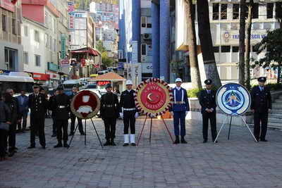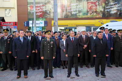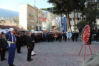 Valilik önünde düzenlene tören valilik, garnizon komutanlığı ve belediye başkanlığı çelenklerinin Atatürk Anıtı'na sunumuyla başladı.