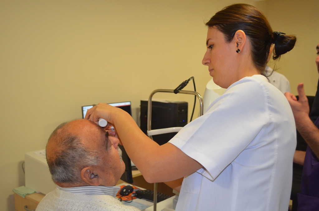 Burada , elimizin üzerindeki veya ön bilekteki bir damardan ince bir iğne ile boya maddesi verilir. Bu madde göz dibindeki damarlara ulaşınca özel renkli flaşla fotoğraf çekilir ve bu damarların görünür hale gelmesi sağlanır. Bu teknik ile damar duvarındaki değişikliklerin tespiti çok kolaylaşmakta ve tespit edilen hastalıkların da takibi mümkün olmaktadır. Verilen boya maddesi vücuda zararsızdır ve çok az miktarda verilmekte ve idrarla atılmaktadır. Tetkik sonrasında cildin ve idrarın ilk saatlerde sarı çıkması normaldir, boya vücuttan tümüyle atılınca düzelir.” Dedi.