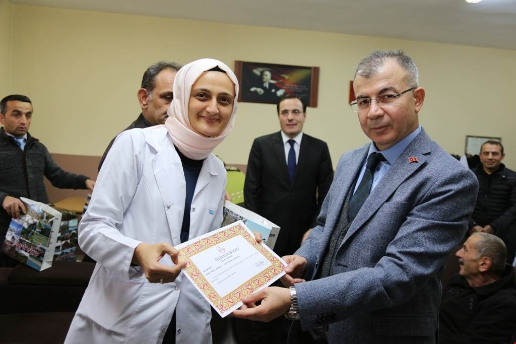 Başarılı ve özverili çalışmalarından dolayı okulda görevli 5 öğretmeni tebrik ederek, “Başarı Belgesi” ile ödüllendirdi.