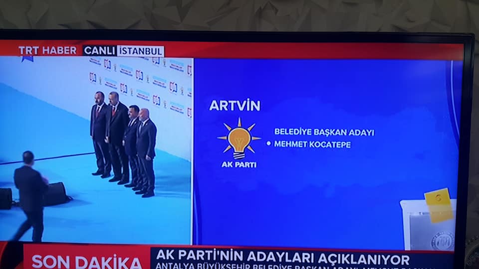 Cumhurbaşkanı ve AK Parti Genel Başkanı Recep Tayyip Erdoğan, Haliç Kongre Merkezi'nde düzenlenen AK Parti Belediye Başkan Adayları Tanıtım Toplantısı'nda 40 ilin belediye başkan adaylarını açıkladı. Cumhurbaşkanı Erdoğan, AK Parti’nin Artvin Belediye Başkan adaylığı için mevcut belediye başkanı Mehmet Kocatepe’nin ismini açıkladı.