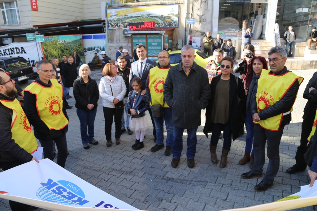 Artvin Eğitim Sen 24 Kasım Öğretmenler günü nedeniyle sokağa çıkarak basın açıklaması düzenledi. Yapılan basın açıklamasında,” Krizin Bedelini Emekçiler Değil, Krizi Yaratanlar Ödesin!” dediler.