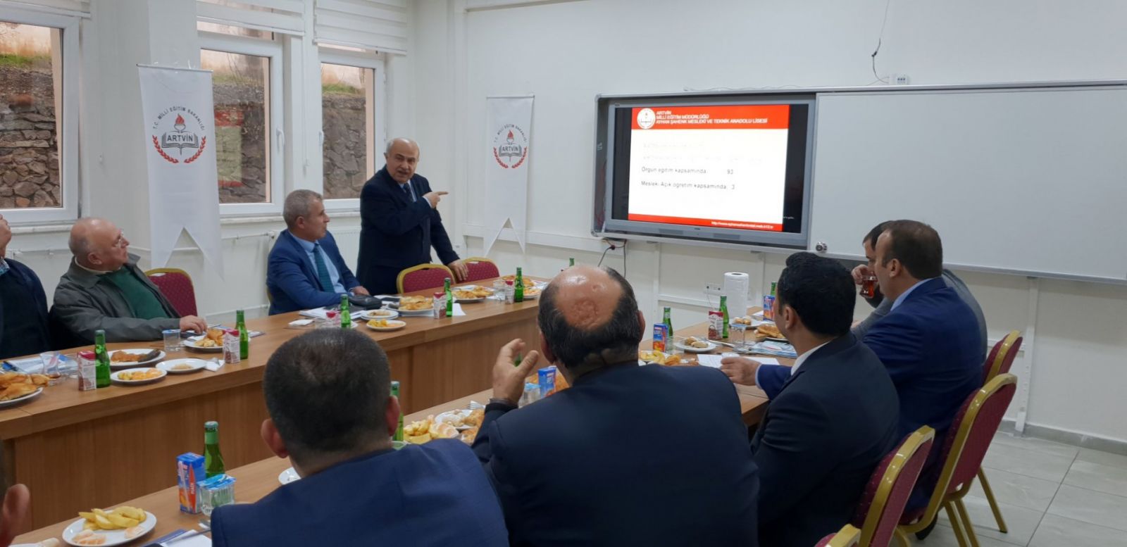 Kahveci’nin sunumunun ardından İl Milli Eğitim Müdür Yardımcısı Kenan Güray, Artvin’de mesleki ve teknik eğitimin genel durumu ve bu alanda faaliyet gösteren eğitim kurumları hakkında genel bilgilendirmede bulundu. Program, mesleki teknik eğitim yöneticilerinin kurumlarının faaliyet alanları hakkında yaptıkları bilgilendirmeler, sektörden beklentileri içeren değerlendirmelerle devam etti. Ardından ilgili kurumlar ve işletme sahipleriyle yapılacak ortak çalışmalar hakkında istişarelerde bulunuldu.