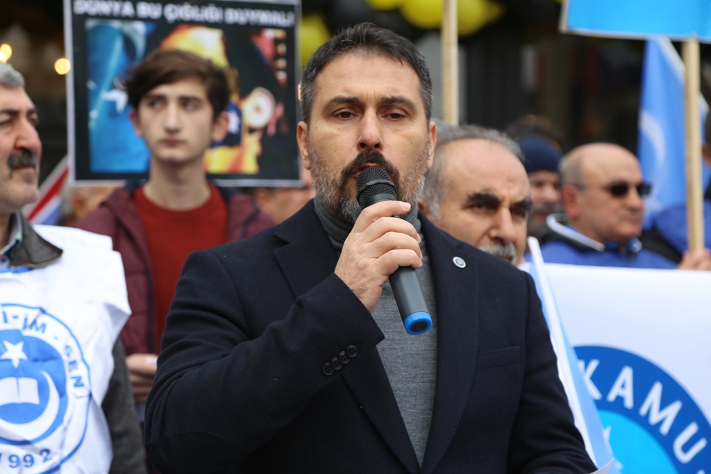 Aksi halde bu katliama sessiz kalan her kurum, örgüt ve ülke, işlenen bu insanlık suçuna ortak olacaktır. Yerin dibine geçsin, faşist Çin! Kırılsın Türk’e saldıran el! Yok olsun Türklük’e kefen biçen hainler! Merhum Mehmet Akif’in dediği gibi; Irzımızdır çiğnenen, evladımızdır doğranan. Hey sıkılmaz, ağlamazsın, bari gülmekten utan!” diyerek sözlerine son verdi.