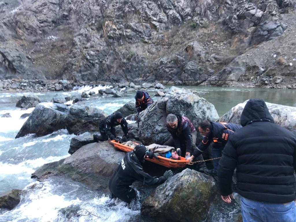 Yusufeli ilçesinde yolda yürüdüğü sırada aracın çarpması sonucu Çoruh Nehri'nde düşen Mehmet Alkan'ın (37) cansız bedenine ulaşıldı.