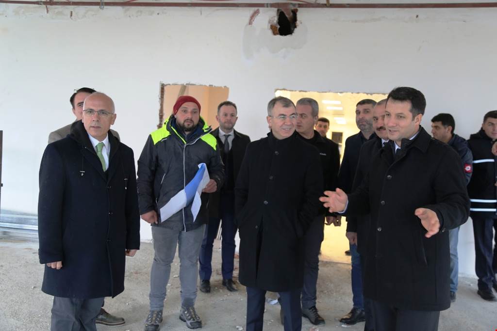 İlk olarak yapımı devam eden ve son aşamaya gelen Hopa Kaymakamlık Hizmet Binası ile Hopa Belediyesi Hizmet Binasını inceleyen Vali Doruk, yüklenici firma sahibinden inşaatın son durumu hakkında bilgi aldı.