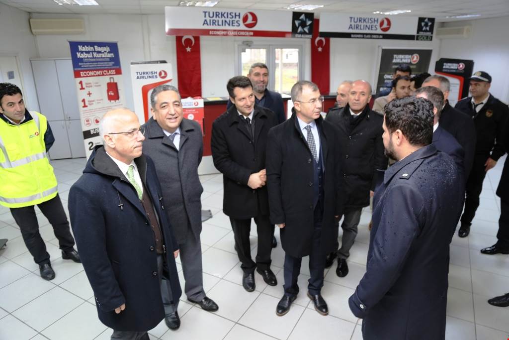 Liman sahasında faaliyetlerini sürdüren Türk Hava Yollarının Hopa Havaş Terminalini de ziyaret eden Vali Doruk, yöneticilerden uçuşlar hakkında bilgi aldı.