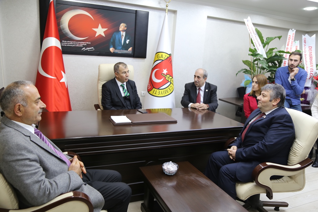 AGC Başkanı Zeki Alkan ve beraberindeki yönetim kurulu üyeleri Vali Doğuk’u kapıda karşıladı.
