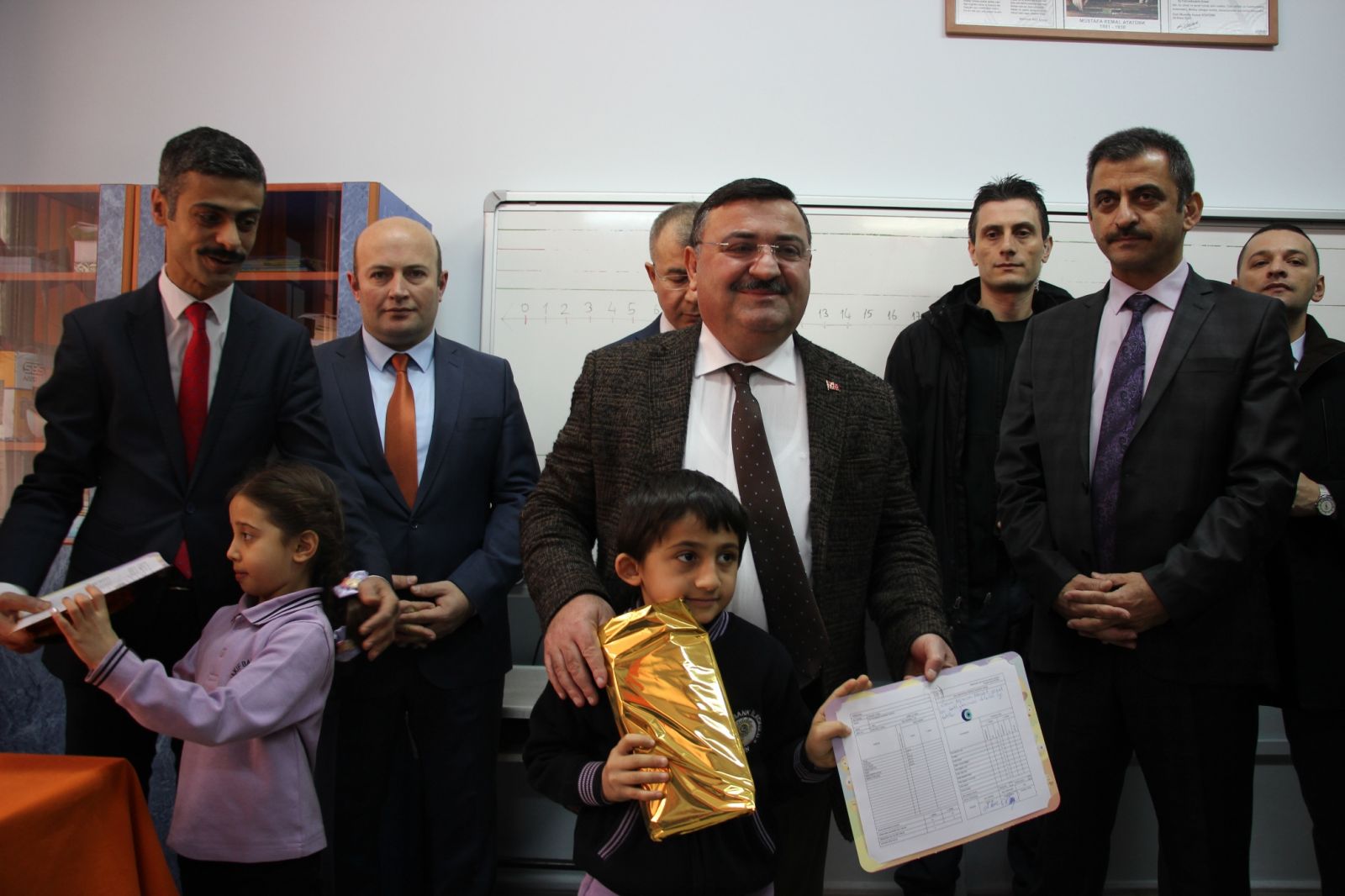 Artvin Valisi Yılmaz Doruk, minik öğrencilere karnelerini vererek tebrik etti. Doruk, öğrencilere şubat tatilinde bol bol kitap okumaları tavsiyesinde bulundu.