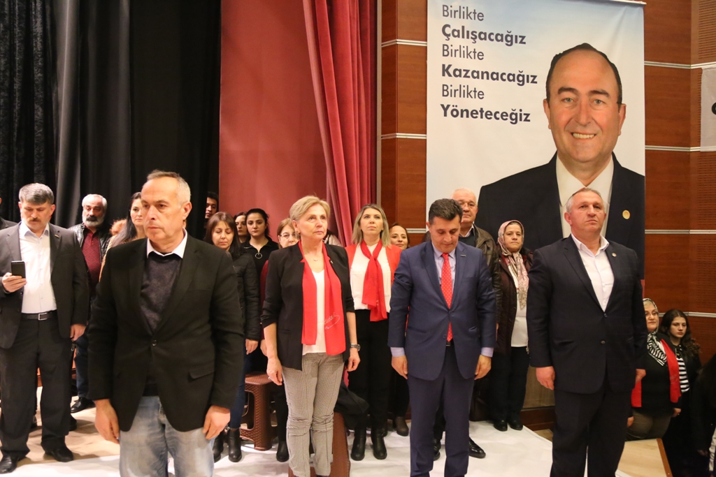 Sunuculuğunu CHP Merkez İlçe Başkanı Cüneyt Öztürk'ün yaptığı Aday tanıtım programı Saygı Duruşunun yapılması, İstiklal Marşı'nın okunmasıyla başladı. CHP Genel Başkanı Kemal Kılıçdaroğlu ve İYİ Parti Genel Başkan ı Meral Akşener'in mesajı okundu.