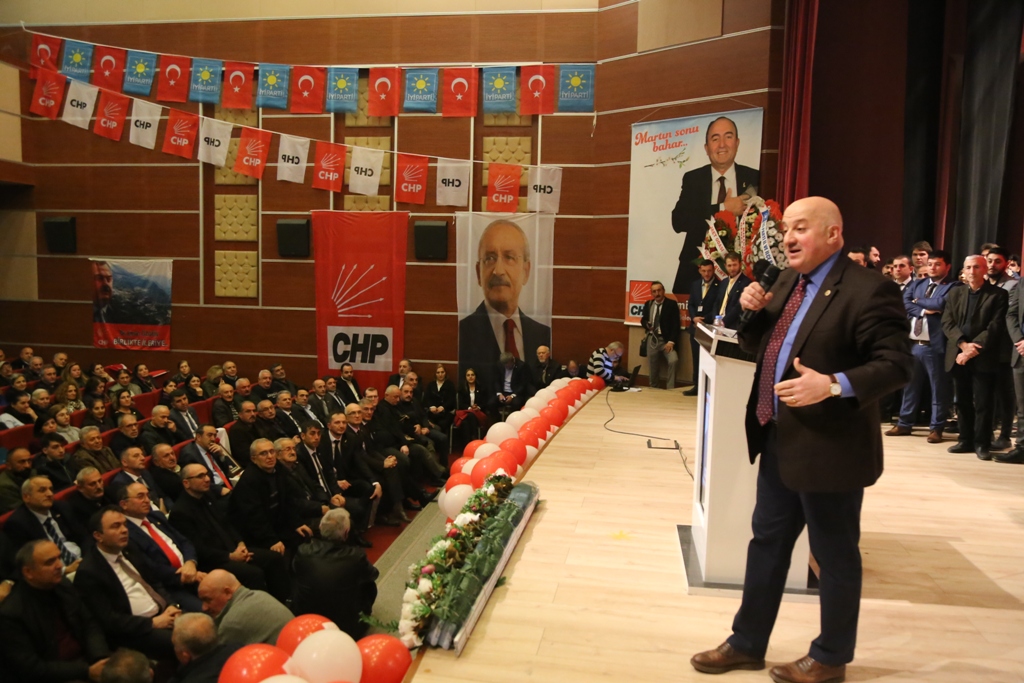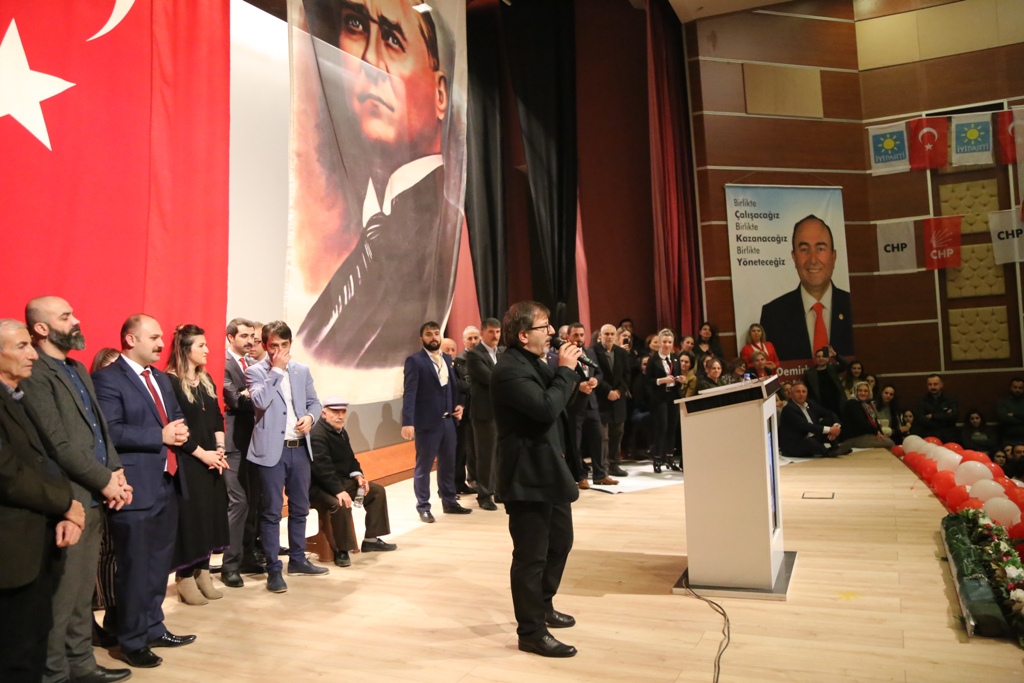 İl Başkanı Ahmet Biber de yaptığı konuşmasında; “Bu güzel topluluğu burada görmek hepimizi mutlu etti. Burada kadınlarımız gençlerimiz var. Tüm demokrasi güçleri burada. 31 Martta bu demokrasi güçleri bu kaleyi tekrar alacak. Bundan eminiz. Bir şeyi söylemeden geçemeyeceğim. Bugün ülkemiz gerçekten beklemediğimiz yolda ilerliyor. Sıkıntılarımız. Türkiye'de borçların nasıl arttığını buna karşı tarımımızın nasıl çöktüğünü, son dönemde gümrük vergileri düşürüldü ithalatın önü açıldı. Soğan ve domatesin gümrük vergileri düşürülecek Bizim çiftçimiz ne olacak. Her şeyi ithal eder hale geldi Türkiye'nin geleceğinden kaygılıyım. Çocuklarımızın geleceğinden endişe ediyorum. 550 milyar dolar dış borç var. Ödenemiyor. Tekrar üreten Türkiye oImak zorundayız. Tüketen belediyeler değil, üreten belediye olacağız. Borçlanan değil kaynak yaratan, kaynak sağlayan belediye olacağız Çağdaş Cumhuriyet şehrini tekrar sağlayacağız. Geleceğimizi umutlarımızı koruyoruz. Seçimlerde bu mutluluğu hep beraber yaşayacağız” dedi.