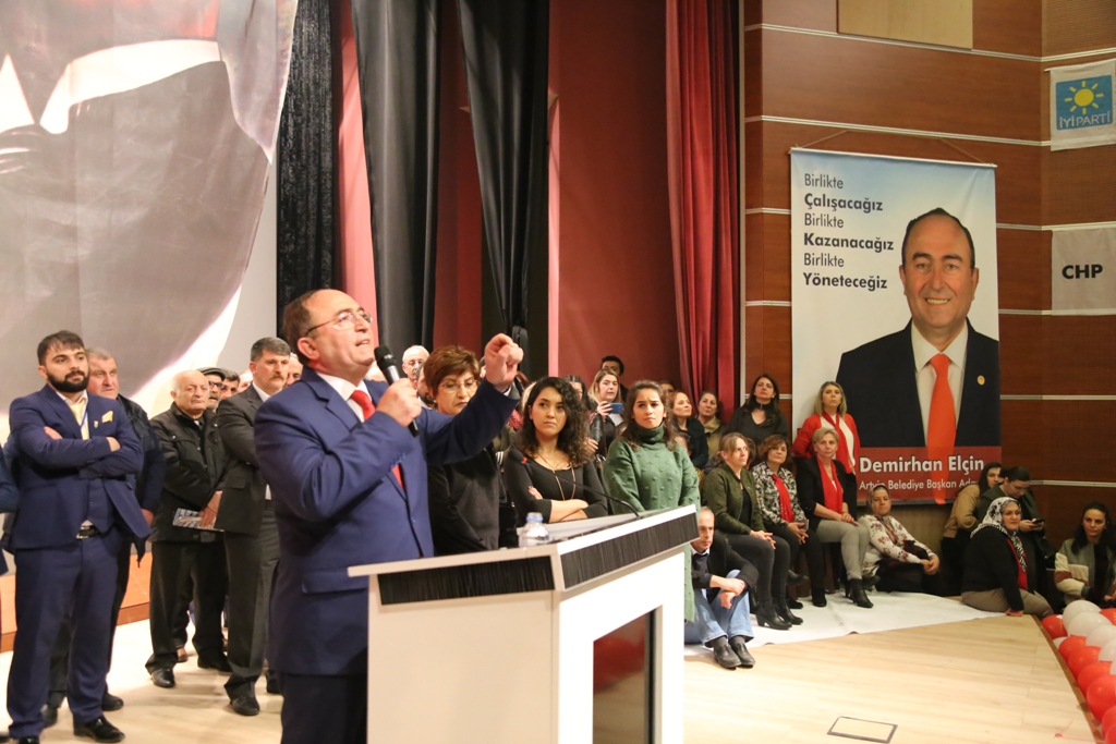 Son olarak konuşma yapan CHP Belediye Başkan Adayı Demirhan Elçin uzun bir konuşma gerçekleştirdi. Elçin konuşmasında şu ifadelere yer verdi; “Ben sizlere kısa bir yaşam hikayemi anlatmak istiyorum. Ben 30 Haziran 1960 tarihinde babamın ve çocuklarımın da doğduğu Artvin Balcıoğlu mahallesinde doğdum sülalem buradan geriye doğru 350-400 yıllık Artvin, yerlisidir, ilkokulu gazi ilkokulunda. Ortaokulu 50.yıl orta okulunda, lise öğrenimini Artvin endüstri meslek lisesinde tamamladıktan sonra Ankara yüksek teknik öğretmen okulu şimdiki adıyla teknik eğitim fakültesini kazanarak üniversite hayatına başladım, 1980 öncesi öğrenci olayları nedeniyle öğrenimimi tamamlayamadan Artvin'e geri döndüm , öğrenim hayatımı daha sonraki yıllarda Anadolu üniversitesi halkla ilişkiler bölümünü bitirerek tamamladım çalışma hayatına orman işletme müdürlüğü , o zamanki adıyla YSE ve DSİ müdürlüklerinde geçici işçi olarak çalıştım , 1979 yılında Dsi de teknik personel olarak devlet memurluğuna başladım.