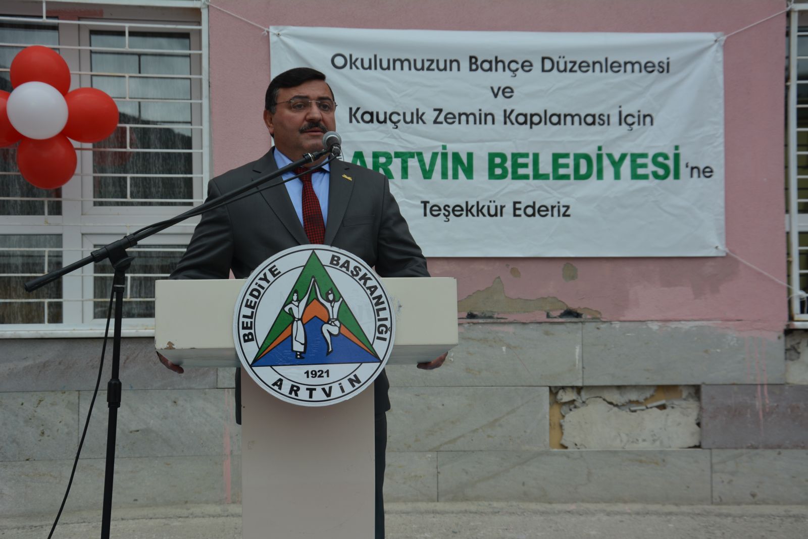 Yeni Mahalle İlk ve Orta Okulu müdürü Muhammet Gebiç, Artvin Belediyesi tarafından yapılan kauçuk zemin kaplamasından dolayı Başkan Kocatepe’ye teşekkür etti.