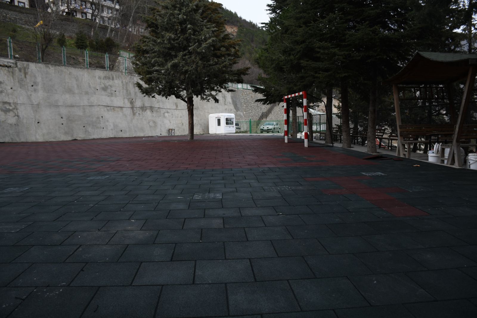 Artvin Belediyesi tarafından çocukların daha güvenli ortamda oyunlar oynaması için okul bahçelerine yapılan kauçuk zemin kaplamaları öğrencilerin ağırlıklı olarak oynadıkları oyunlara göre dizaynedildi.