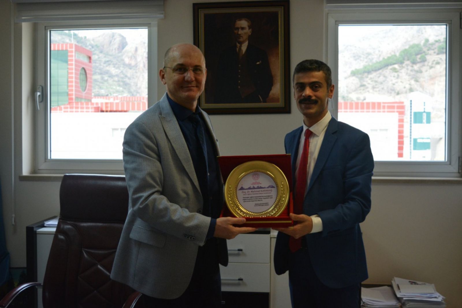 Kahveci, Artvin Milli Eğitim Müdürlüğünce AÇÜ işbirliğiyle uygulanmakta olan Yaşayan Matematik Projesindeki katkıları için de Eğitim Fakültesi Dekanı Doç. Dr. Mehmet Karakaş, Dekan Yardımcısı Dr. Öğretim Üyesi Zeki Aksu ve Dr. Öğretim Üyesi Selcen Çalık Uzun’ teşekkür ederek plaket takdim etti.