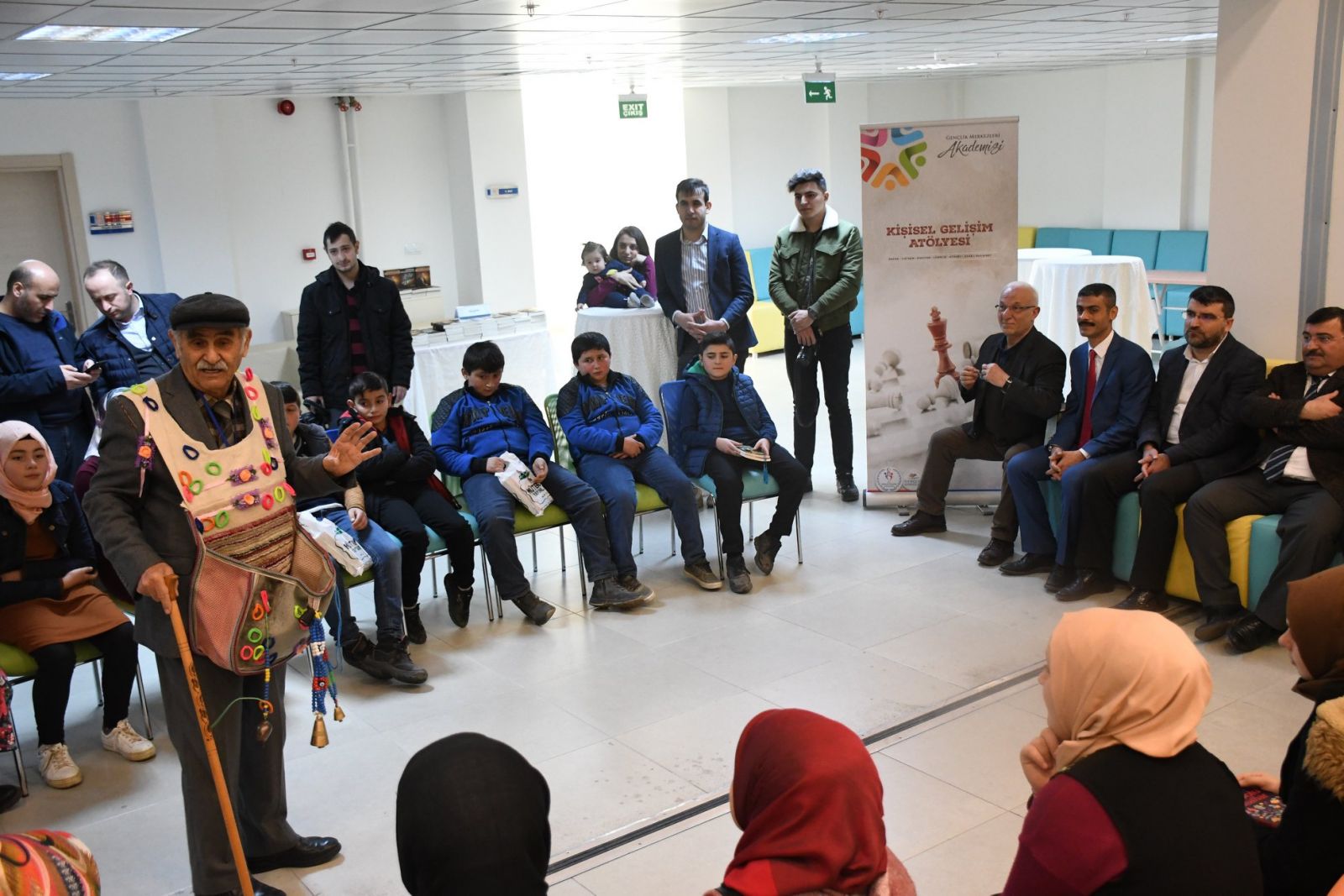 Gençlik Merkezi öğrencilerinin piyano dinletisi sunduğu fuarda, masalcı dede olarak tanınan Cemalettin Kavaklıgil'in giydiği kostümle öğrencilere masal anlatması ilgi çekti.