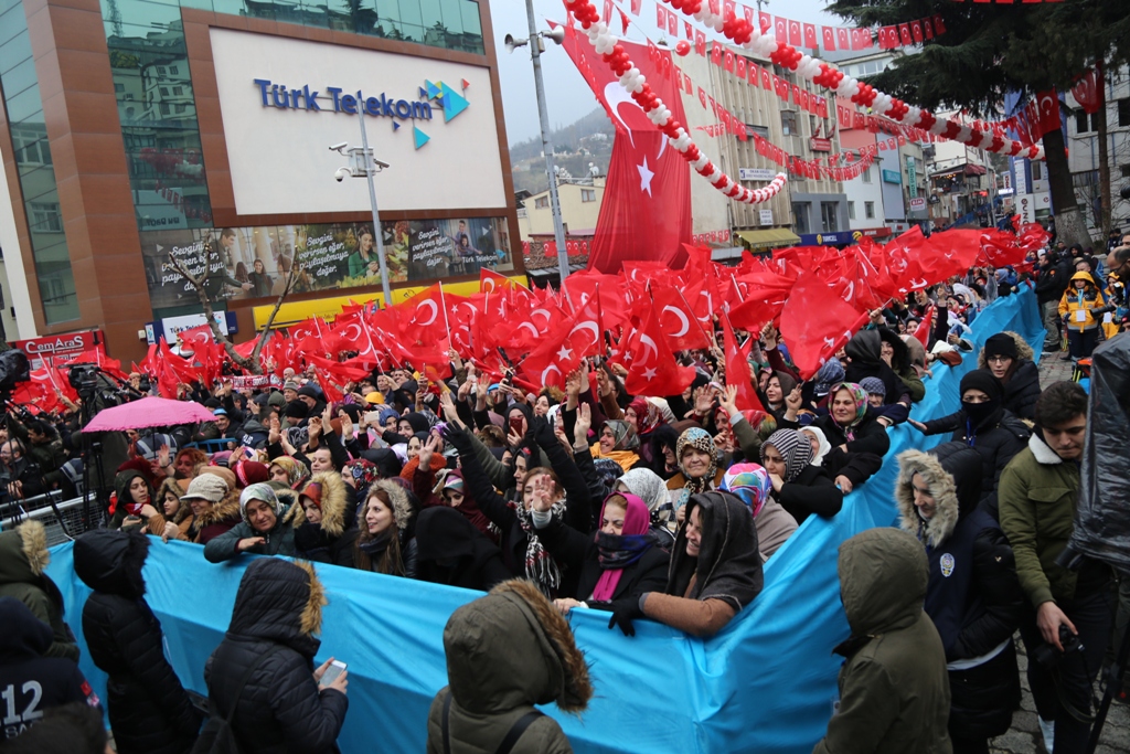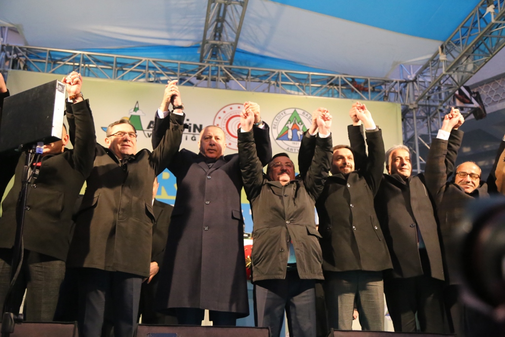 Cumhurbaşkanı Recep Tayyip Erdoğan, yerel seçimler öncesinde toplu açılış törenine ve Artvin Mitingine katılmak üzere Artvin'e gelerek 15 Temmuz Milli İrade Meydanı'nda Artvin halkına hitap etti. Cumhurbaşkanı Recep Tayyip Erdoğan Artvin'de düzenlenen toplu açılış töreninde konuştu. Erdoğan, AK Parti döneminde 9 milyon yeni istihdam oluşturduklarını belirterek, "Bu yıl sonuna kadar TOBB ile birlikte çalışıyoruz. 2,5 milyon işsize inşallah iş temin edeceğiz" dedi.