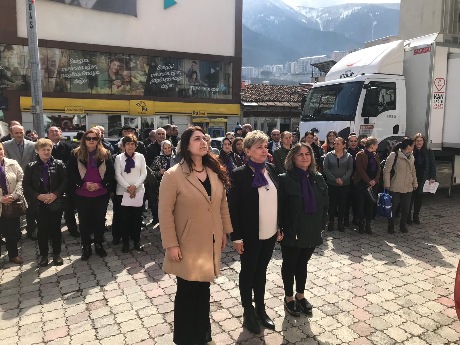 8 Mart dünya emekçi kadınlar günü nedeniyle Atatürk anıtına çelenk Kadın Kolları Başkanı Gülşen Kurul sundu. Ardından kürsüye çıkarak basın açılamasında bulundu. Kurul açıklamasında; “Bugün; 162 yıl önce, daha iyi çalışma koşulları için greve giden, ancak maruz kaldıkları polis şiddeti sonucunda yanarak can veren New York’lu 120 kadın işçinin şahsında, geçmişte ve günümüzde hak mücadelesi veren; kadınları, işçileri, yoksulları, ezilenleri, emekçileri anmanın, mücadele azmimizi törpülemenin günü.