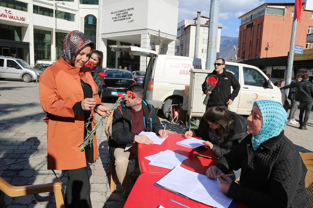 Artvin Valisi Yılmaz Doruk'un eşi Meral Doruk Hanımefendi "8 Mart Dünya Kadınlar Günü" dolayısıyla, esnaf kadınları ziyaret ederek, günlerini kutladı ve karanfil verdi.