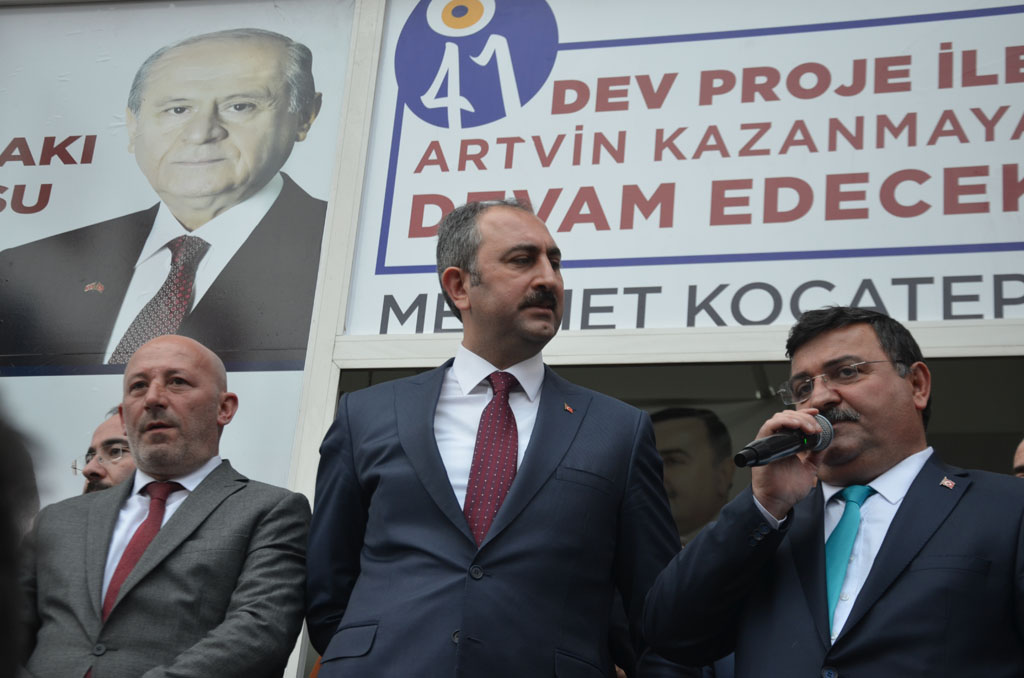 Adalet Bakanı Abdülhamit Gül, Cumhur İttifakı’nın Artvin Merkez, Borçka ve Ardanuç ilçesindeki seçim bürosu açılışını gerçekleştirdi. Artvin Merkez’de Çayağzı Mahallesi’nde AK Parti ile MHP’nin Cumhur İttifakı seçim bürosunun açılışını yapan Adalet Bakanı Abdülhamit Gül yaptığı konuşmada, Artvin’in TBMM’deki ikinci milletvekilinin kendisinin olduğuna vurgu yaparak hemşerileriyle buluşmanın mutluluğunu yaşadığını söyledi. Bakan Gül, Artvin’de iktidar gücüyle geçen 5 yılda nelerin yapıldığının herkesin gördüğünü belirterek “ Hemşerilerim siz bize emredin, bizde onları bu ile getirmek için Ankara’da var gücümüzle yapalım” şeklinde konuştu.