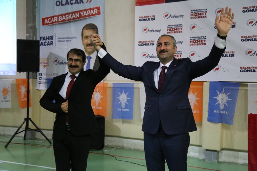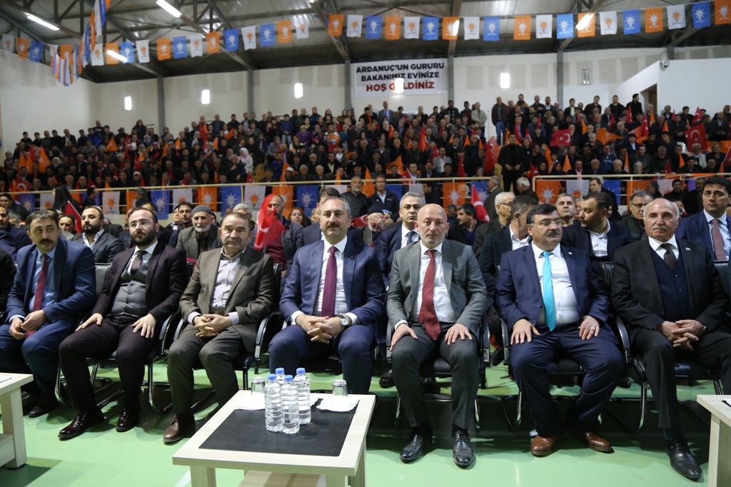 Ardanuç AK Parti ilçe Başkanı Mustafa Bayraktar ise konuşmasında Ardanuç’un öz evladı Adalet Bakanı Abdülhamit Gül’ü ilçelerinde ağırlamaktan dolayı büyük bir mutluluk duyduğunu ifade ederek, 31 Mart seçimleri öncesinde bu ziyaretin öneminin büyük olduğuna vurgu yaptı. Ardanuç Belediyesi’nin AK Belediyeler arasına girmesi ile birlikte Ardanuç’un kaderinin değişeceğine inandıklarını belirterek Ardanuç’un makus talihini yeneceğini düşündüğünü söyledi.